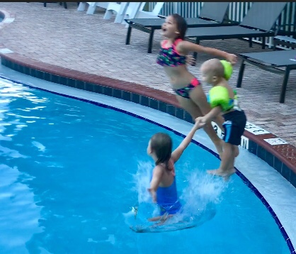 We spent hours at the Marriot’s pool. Dylan is learning to swim without his floaters and he is fearless and proud! He says he is like a sea diver.