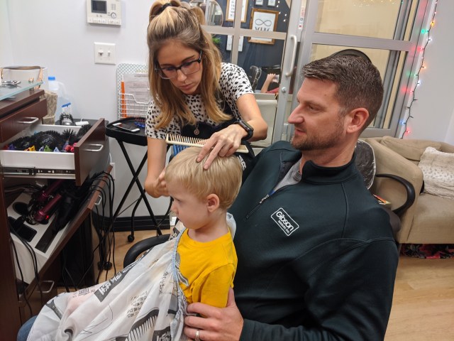 Finally, Dylan got his first professional haircut. He was really scared and had to have Daddy sit with him but afterwards he told us he loved it and did not want to go to bed that night for fear he would ruin his handsome hair!