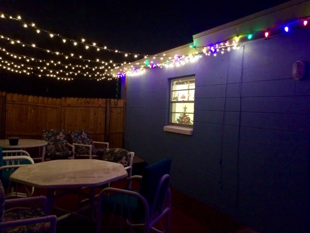 Adam hung Christmas lights and we have been enjoying the happy twinkle on our patio.