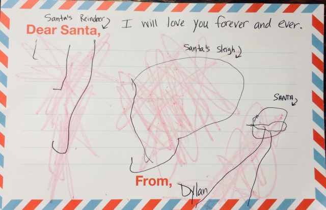 Dylan drew Santa and his sleigh and the reindeer.