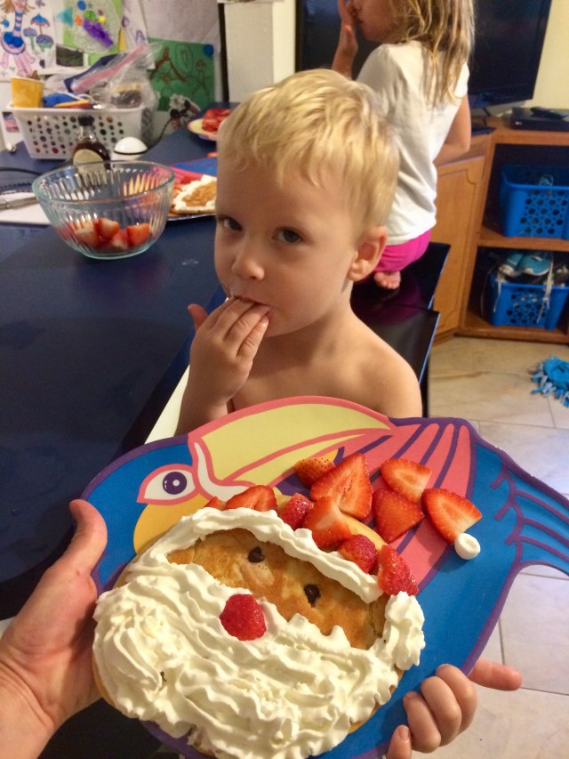 Christmas Eve morning we made Santa and Rudolph pancakes.