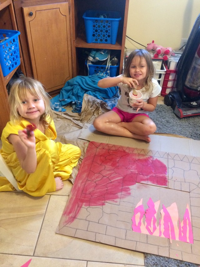 This week the girls started to get really worried that the magic key Santa uses to enter homes without fireplaces might not work. To ease their minds, we made a fireplace for Santa. Adam designed and drew it and the kids and I painted the bricks using sea sponges we collected at the beach. It came out great and made fantastic toasted marshmallows!