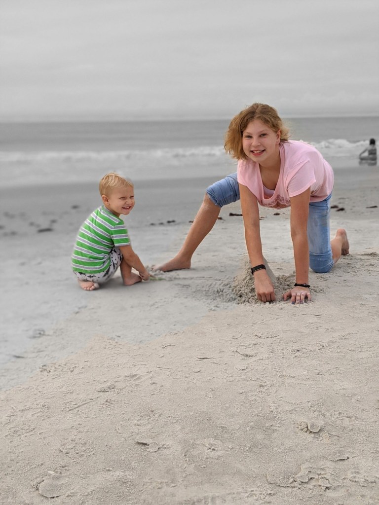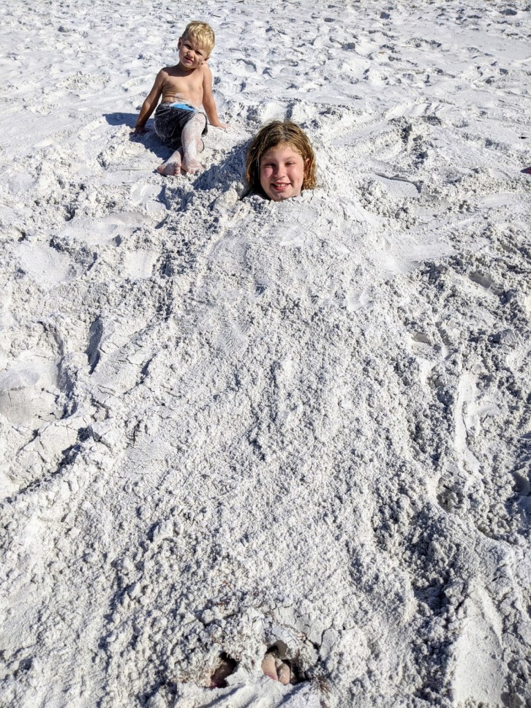 What beach day would be complete without children buried in sand? Moments after taking Connor’s picture the boogieboard/tombstone blew over and bonked him in the head lol.