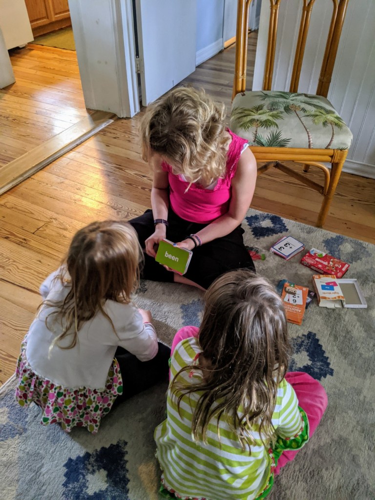 The next morning Addy and the girls played school and it was sweet to see how hard the girls worked for her (the gummy bear rewards may have helped too).