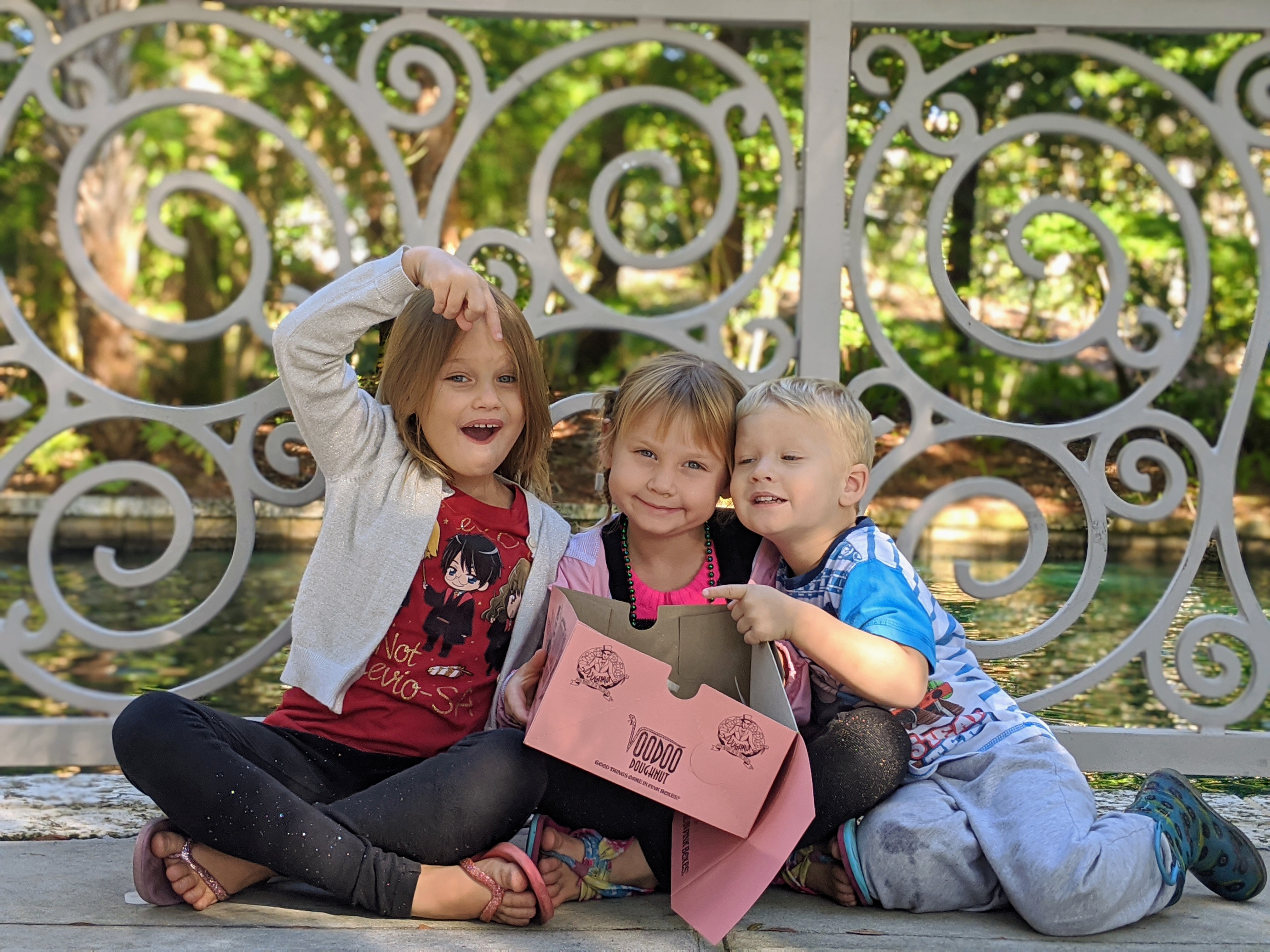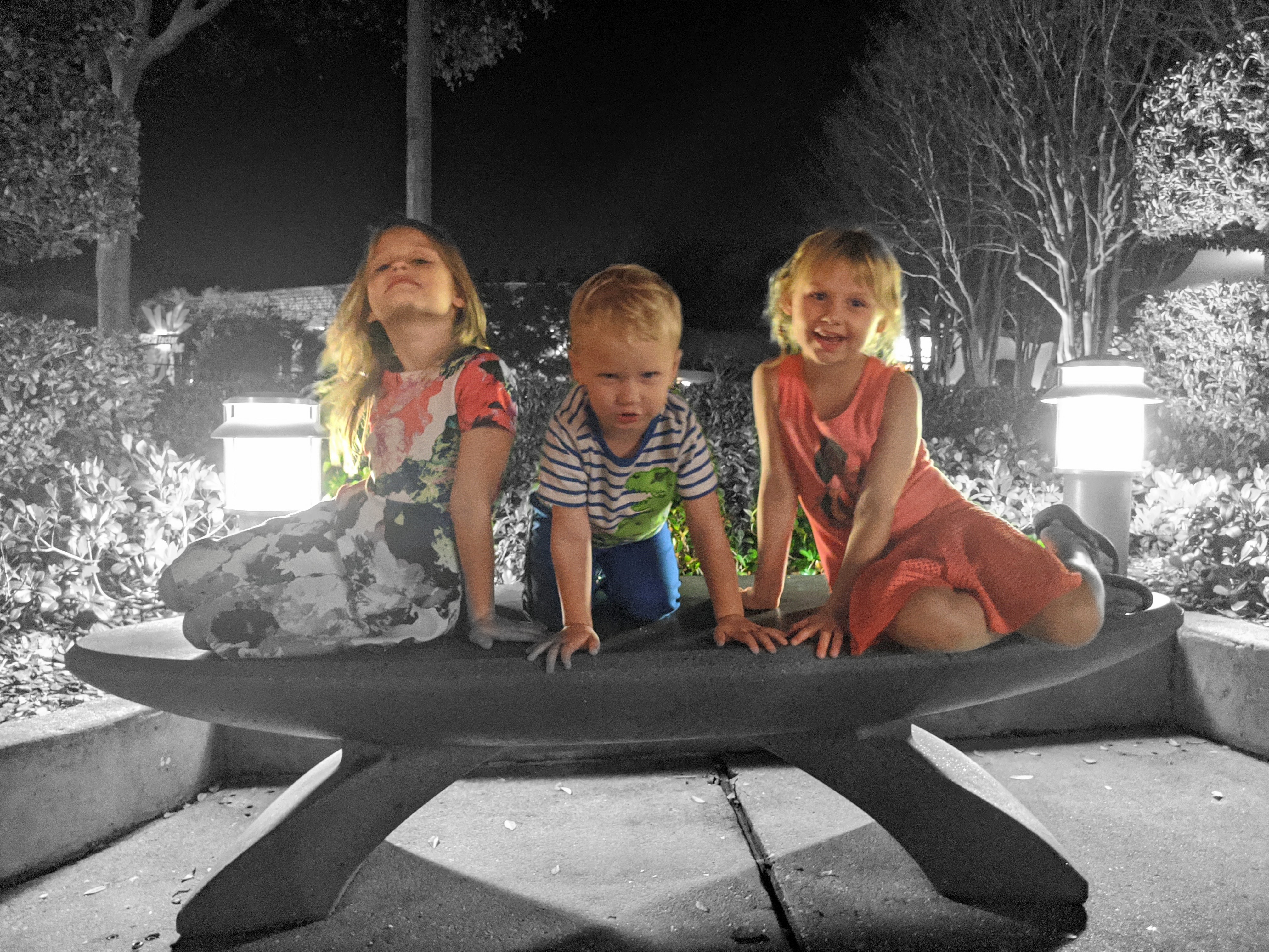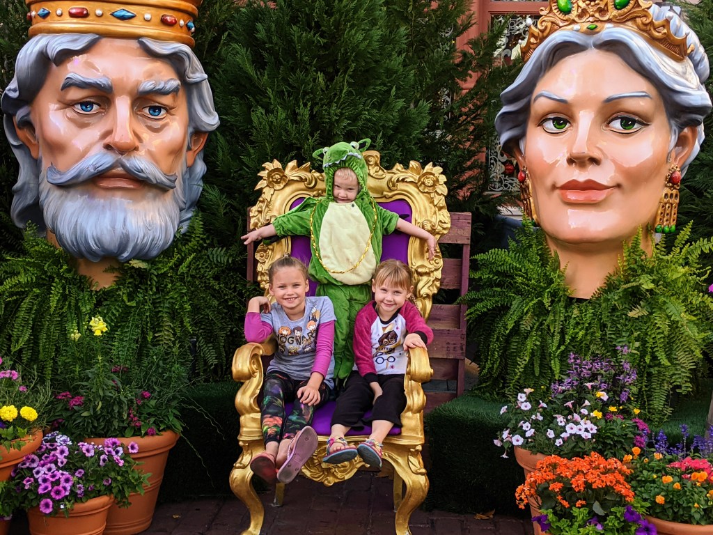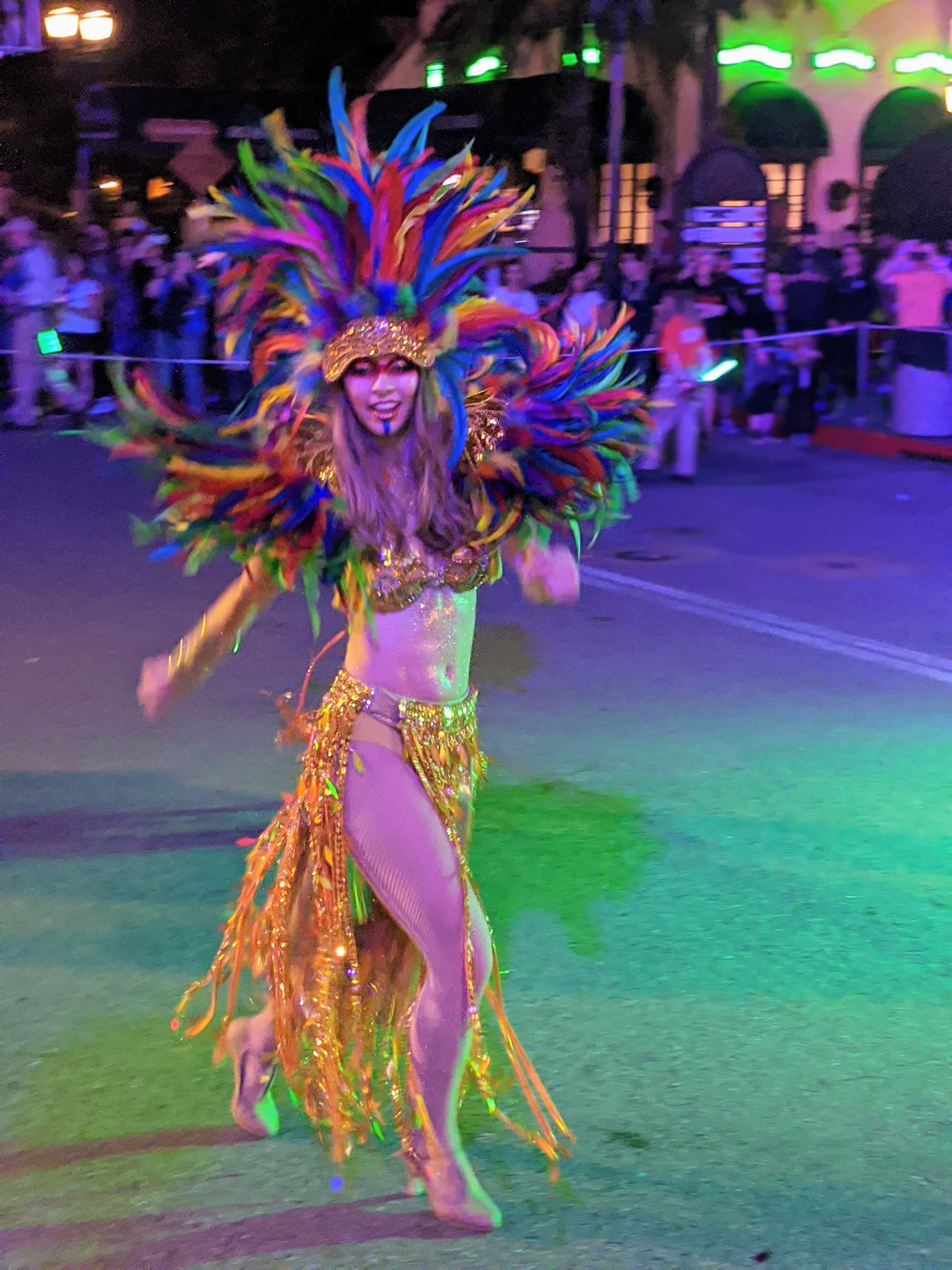 Universal has a Mardi Gras celebration and parade and they are celebrating 25 years of the parade. The floats, costumes, and joyful energy is so outrageously great that we saw the parade 6 times! The floats throw Mardi Gras beads and the kids love that. They leave each parade with four pounds of colorful beads. Our backyard fence is now extremely well dressed! The kids enjoyed giving the beads away to others later in the evening. Adam had family in New Orleans and went often to Mardi Gras as a kid and I think he particularly enjoyed the food and festivities.