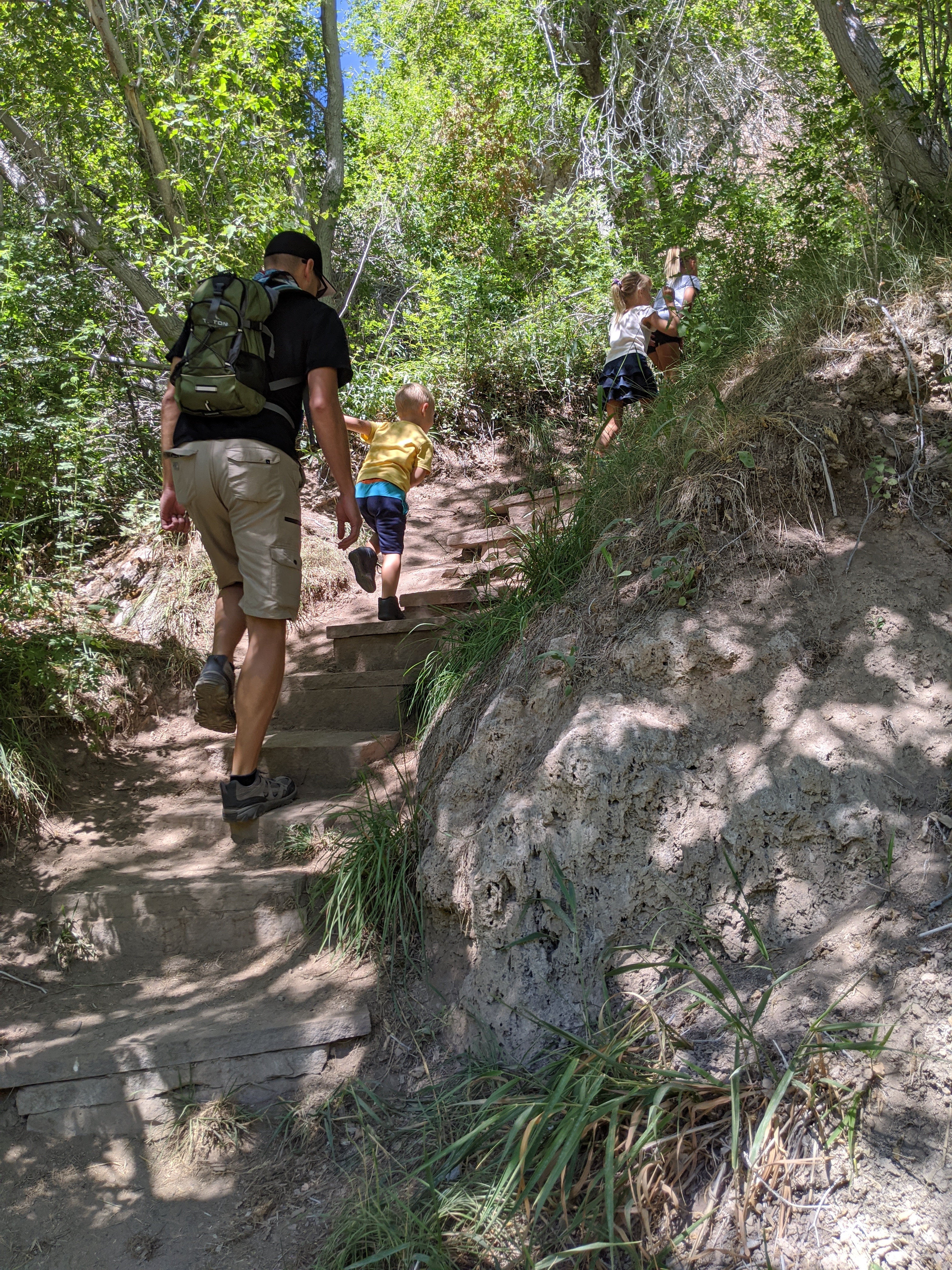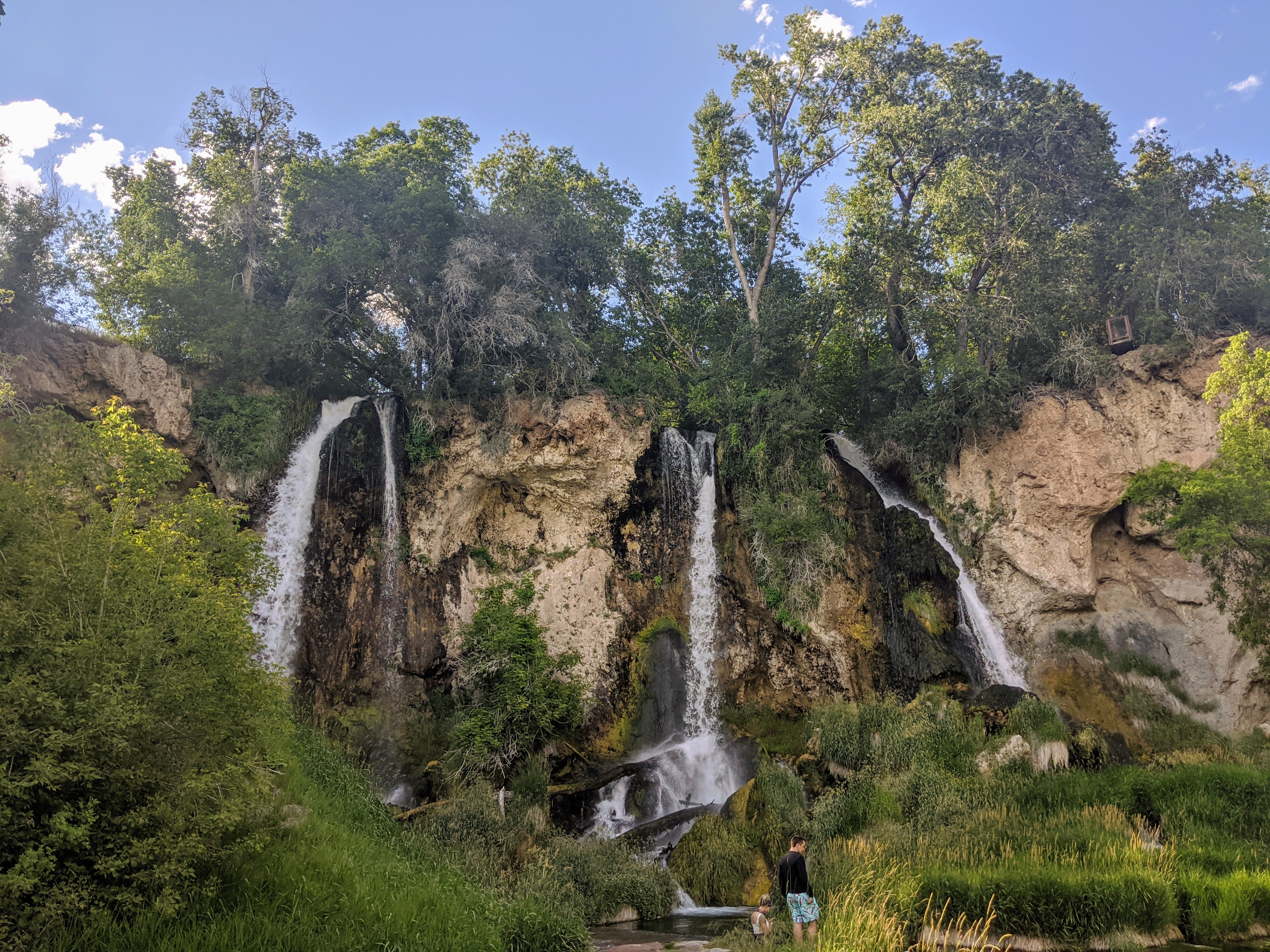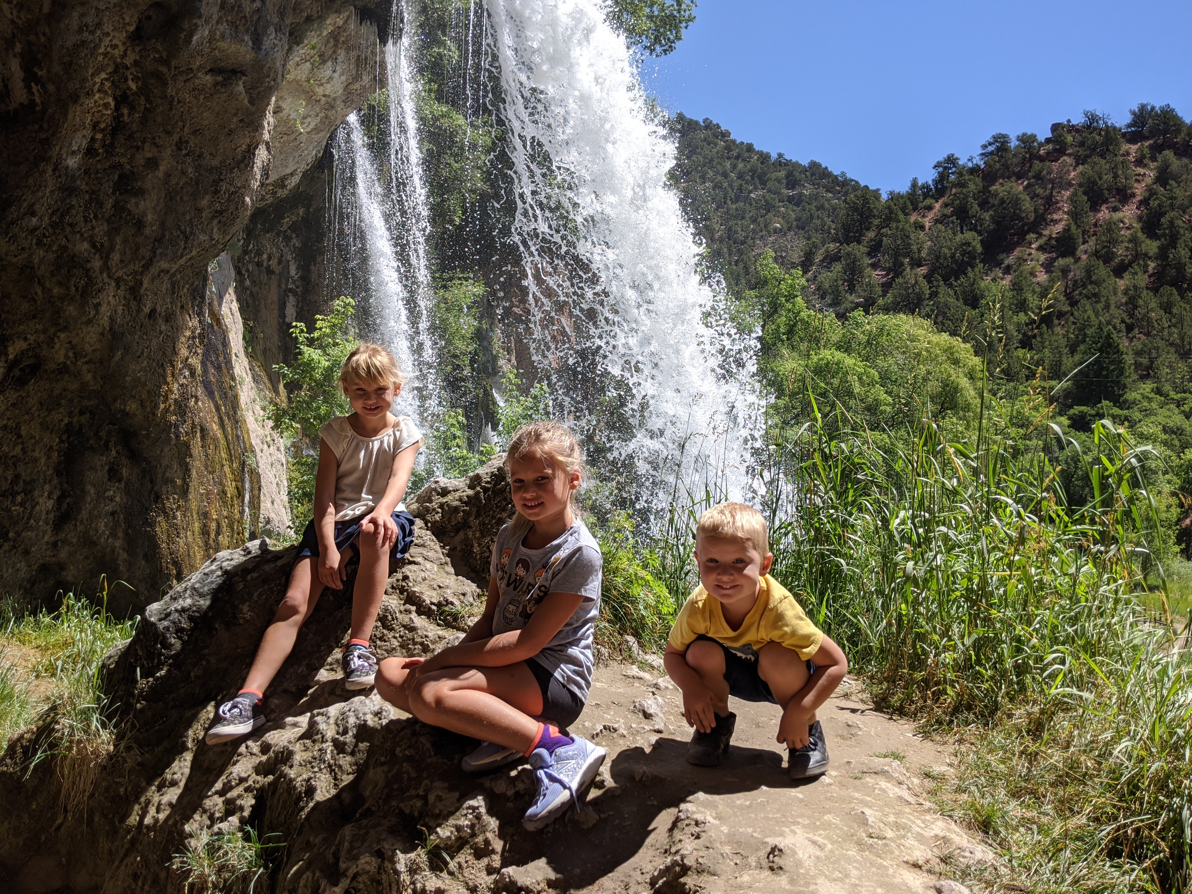 We spent the day hiking at Rifle Falls State Park. All together, I would say we hiked about 3 miles. The kids, especially Dylan, did amazing. Most of the hiking was relatively easy, but there was some parts with tricky footing, slippery descents, and a very steep and rocky climb. Cora loved the steep, rocky section the best and asked to go back down so we could hike up again. The triple waterfalls was a natural water mister and felt amazing on a hot day like today. The vegetation around the falls was lush from the mist as well.