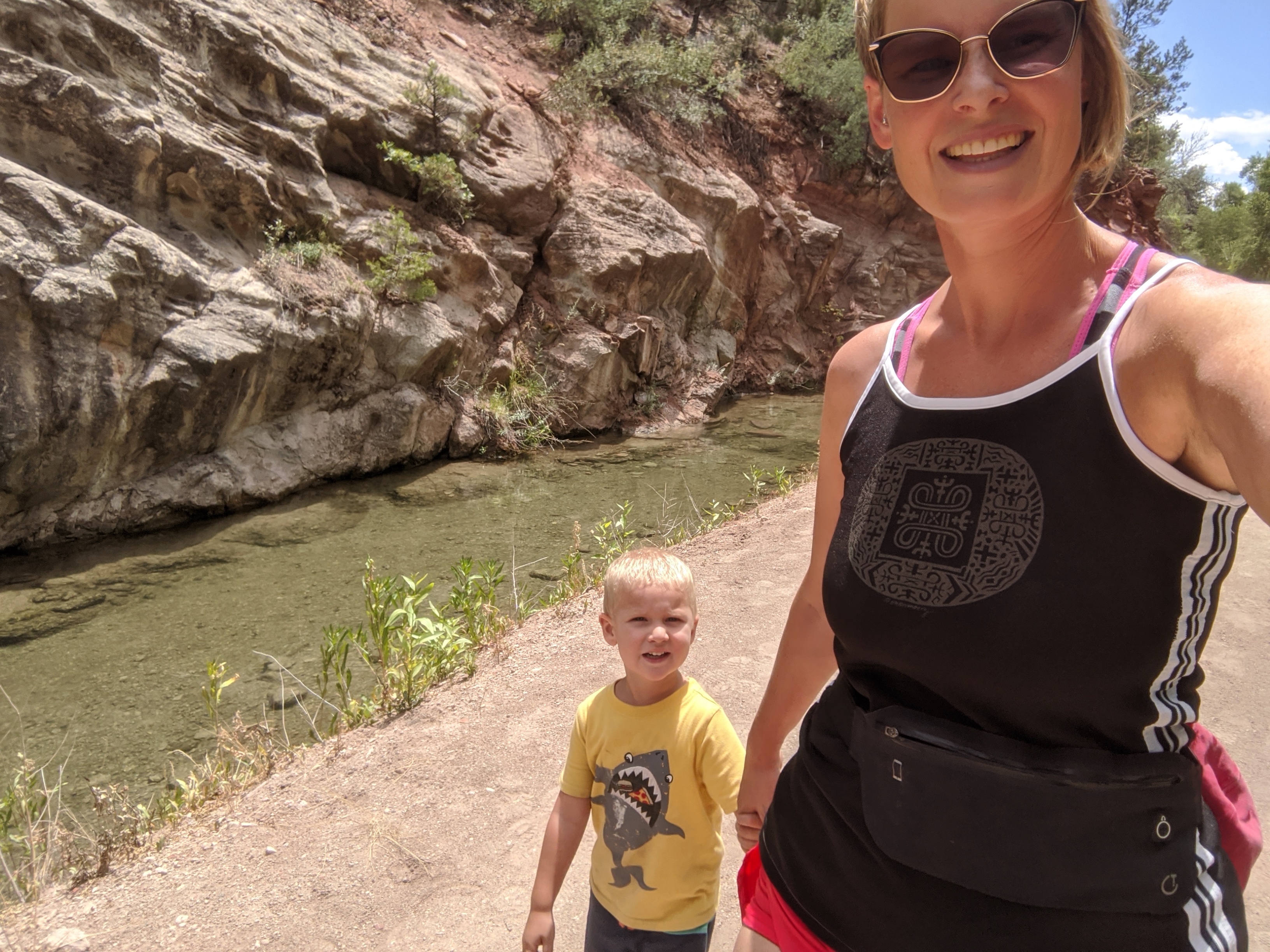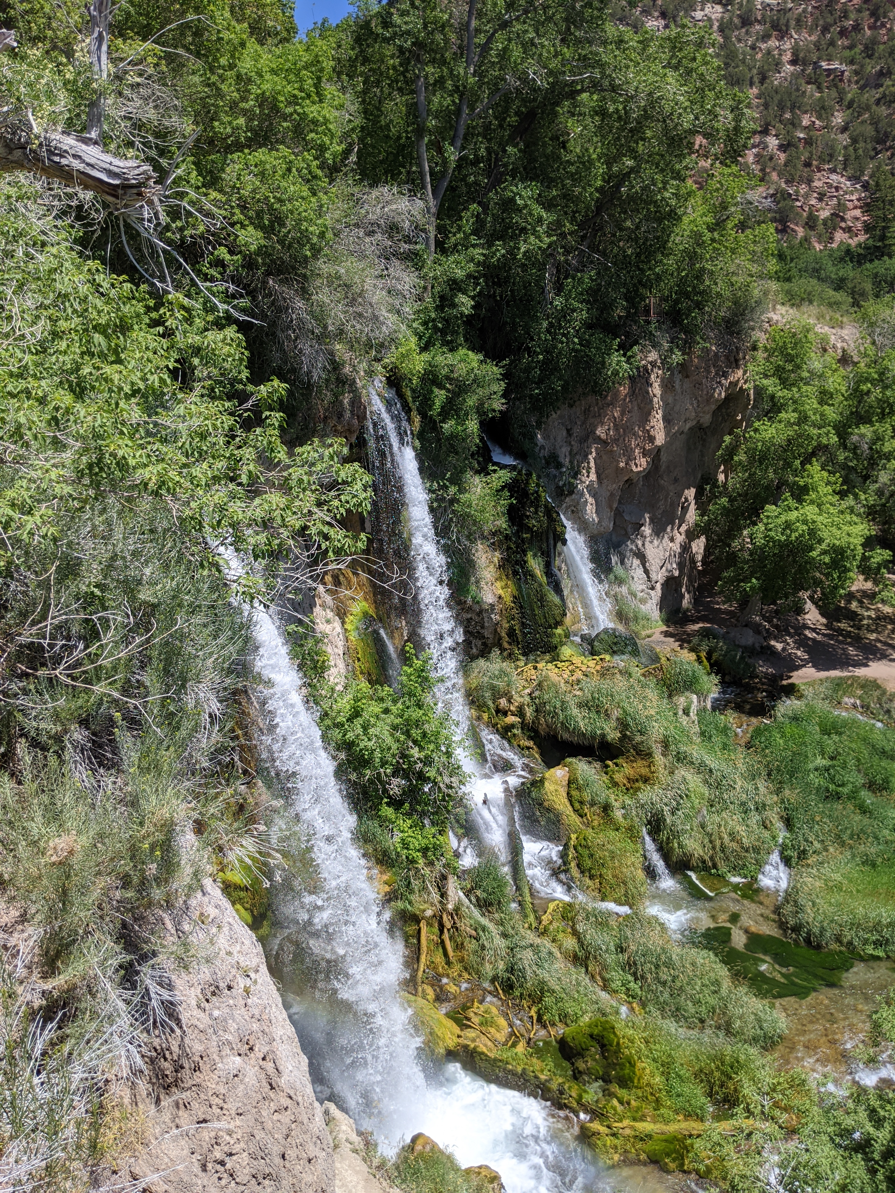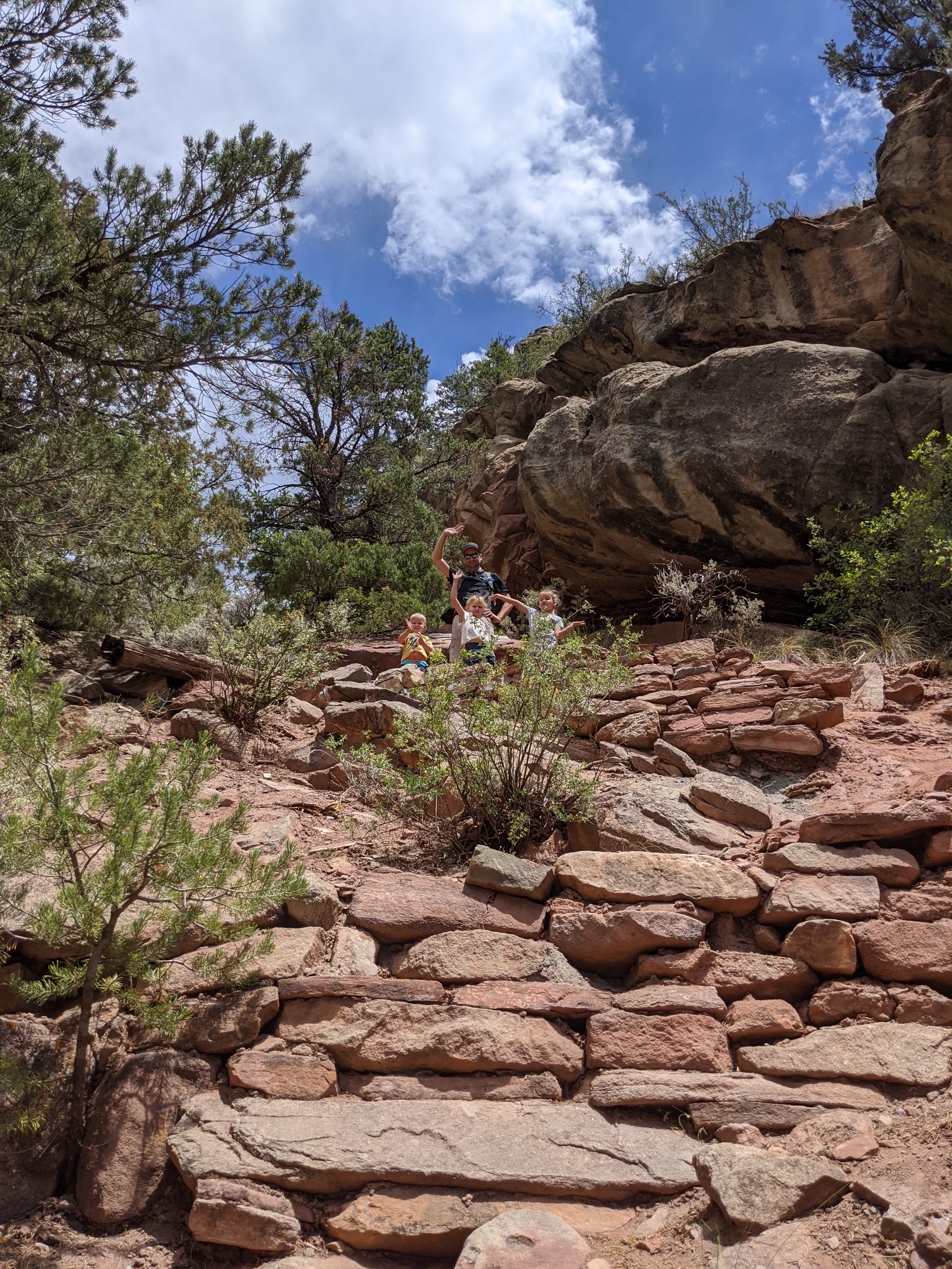 We spent the day hiking at Rifle Falls State Park. All together, I would say we hiked about 3 miles. The kids, especially Dylan, did amazing. Most of the hiking was relatively easy, but there was some parts with tricky footing, slippery descents, and a very steep and rocky climb. Cora loved the steep, rocky section the best and asked to go back down so we could hike up again. The triple waterfalls was a natural water mister and felt amazing on a hot day like today. The vegetation around the falls was lush from the mist as well.