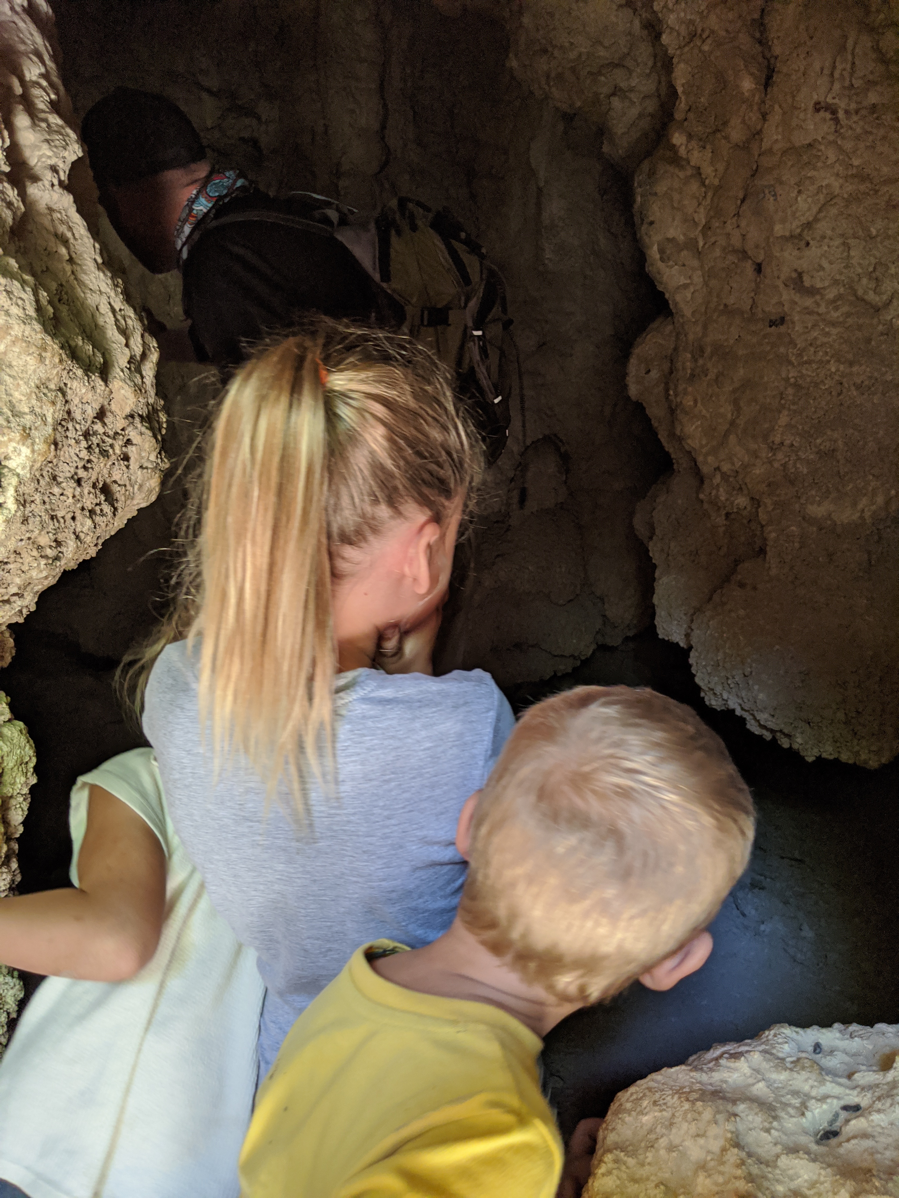 Limestone caves were numerous and we explored many together. At first the kids were very hesitant to enter, but after we had spelunked a few, they were hard to get out. Brooklyn crawled through a little crawl space all by herself using Daddy’s cell phone flashlight. She was really excited about spelunking. With proper headlamps we plan to return and venture deeper.