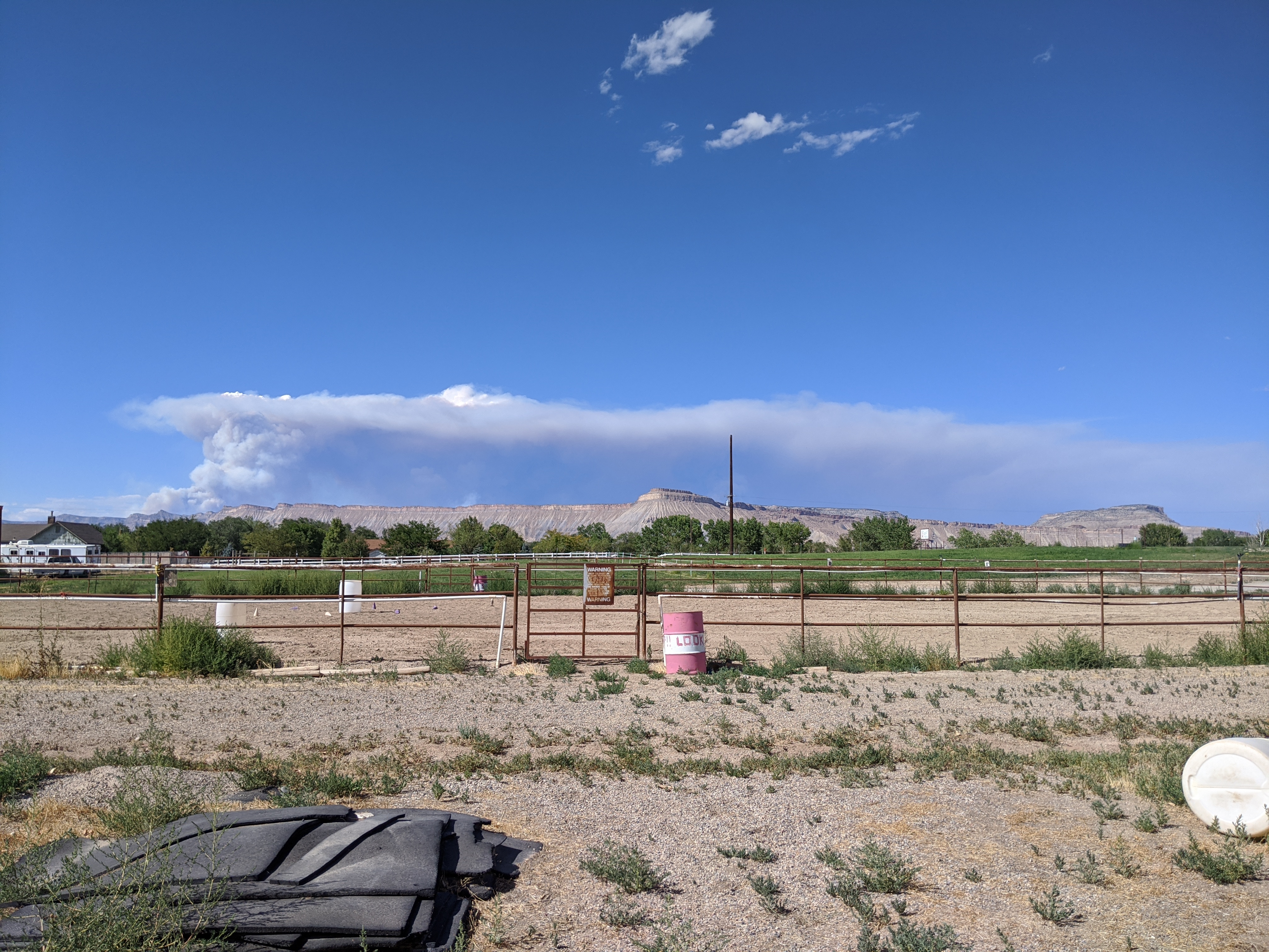 The largest wildfire in Colorado history is raging 18 miles north of our home in the mountains. It has burned over 200 square miles (140,000) acres of land and has inundated our valley with smoke and ash. At first, the smell of campfire was charming, but quickly the air quality over 3 weeks time became oppressive and unhealthy. Ash literally came down like a snow fall in 103 degree heat. Brooklyn and Daddy collected it in a plastic cup for fun one afternoon walk. The skies were grey for weeks. The visibility was so badly effected one could hardly see the beautiful mountains surrounding. We carried on with bbq s and horse back riding for three weeks before we decided to leave for fresh air.