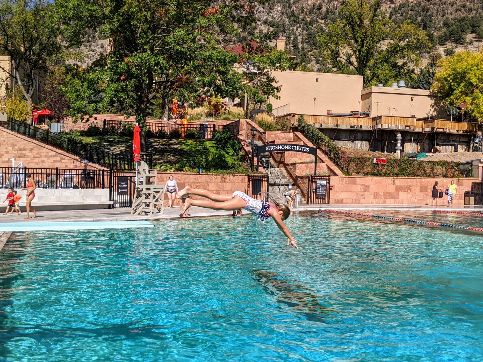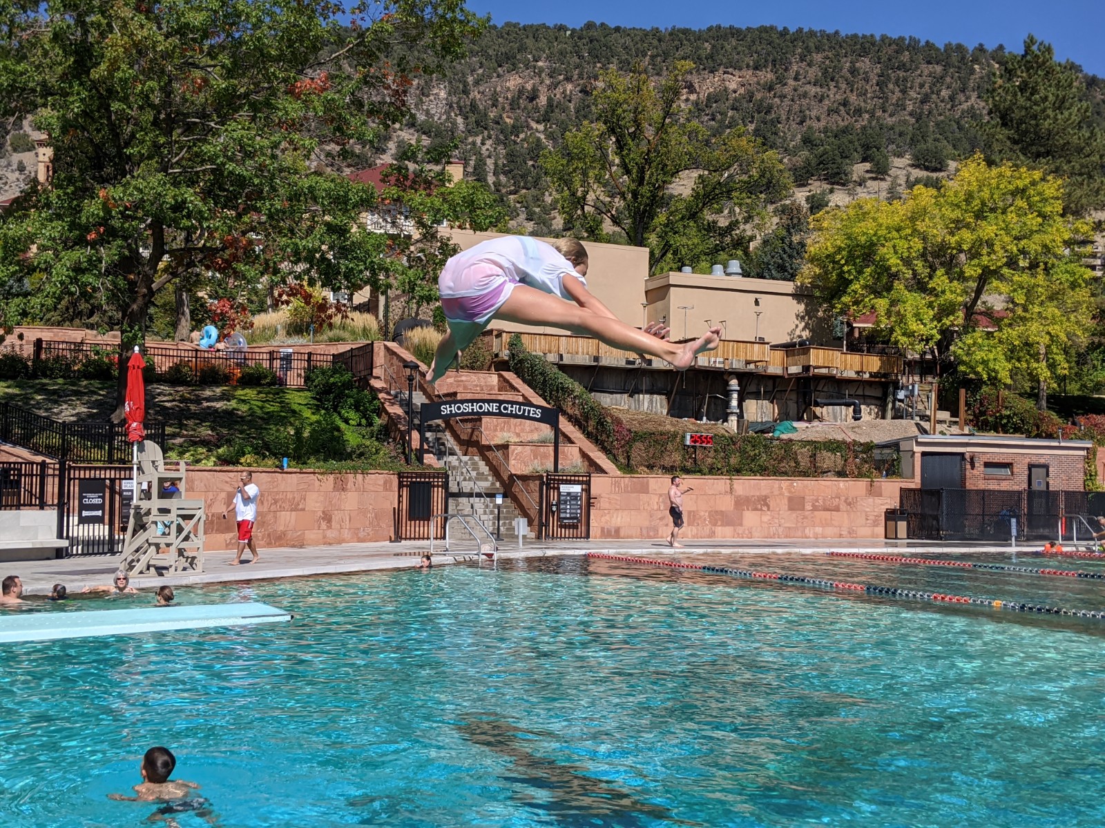 With the winter chill just around the corner, we decided to get a season pass to the Glenwood Springs Hot Springs and bask in the 90° water while the snow flies around us. The springs have been continually operating since 1888 and have 15 naturally occurring minerals which are known for their healing benefits. The native Americans called the water “Yampah” which translates to Big Medicine. The Hot Springs resort is nestled between gorgeous mountains and includes the world’s largest hot springs pool complete with diving board, a spa kept at 104° for the really chilly nights, a lazy river, and a kids play area with a waterfall, water slides, and fountain.