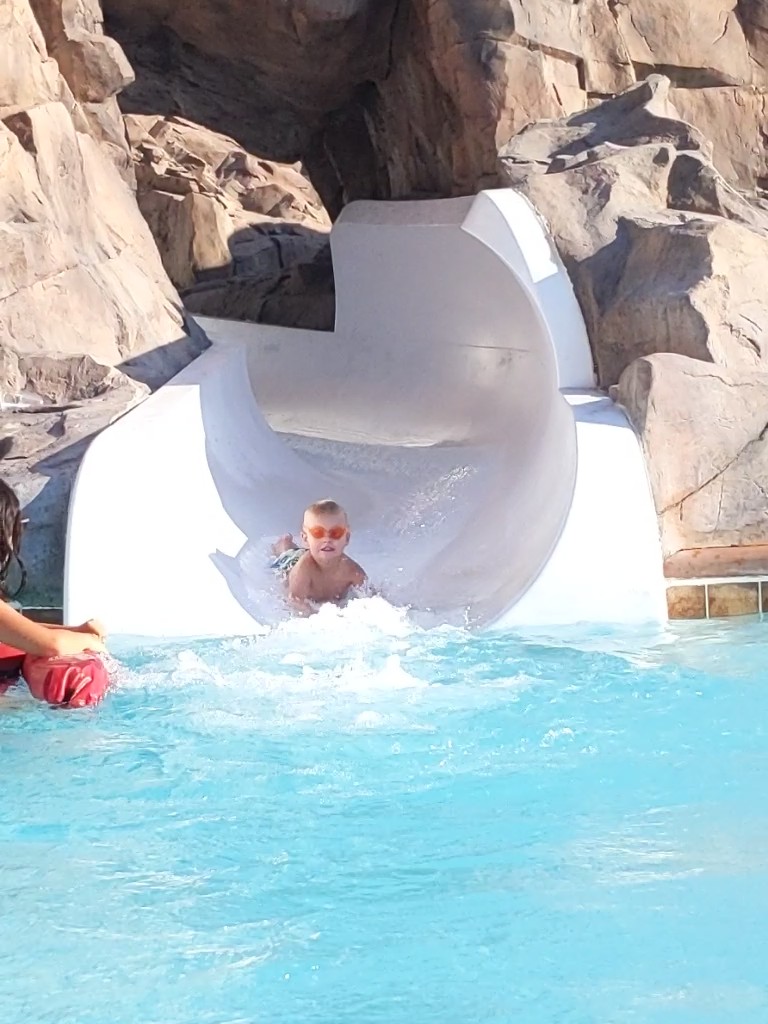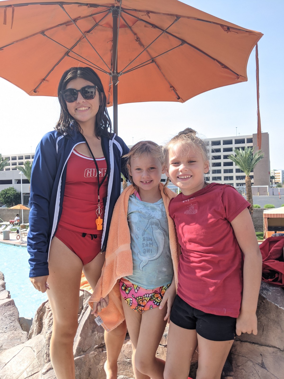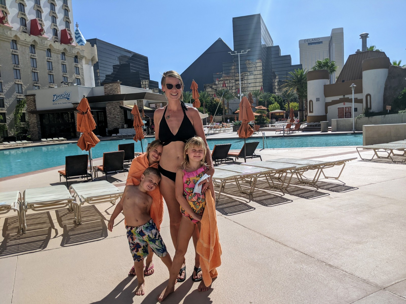 The kids and I spent lots of time at the Excalibur’s three pools, so much time that they befriended a lifeguard. The lifeguard allowed them to sit with her at her post and trained them how to be a lifeguard. The kids loved the water slide! The weather was in the low 90s and laying at the pool every afternoon was just AWESOME.