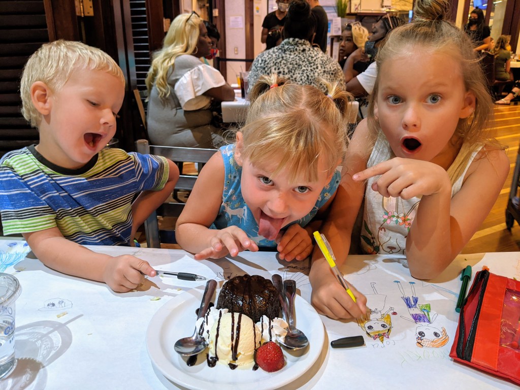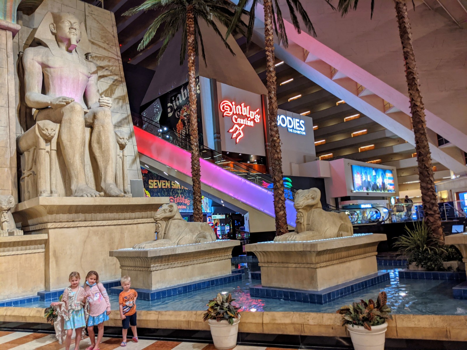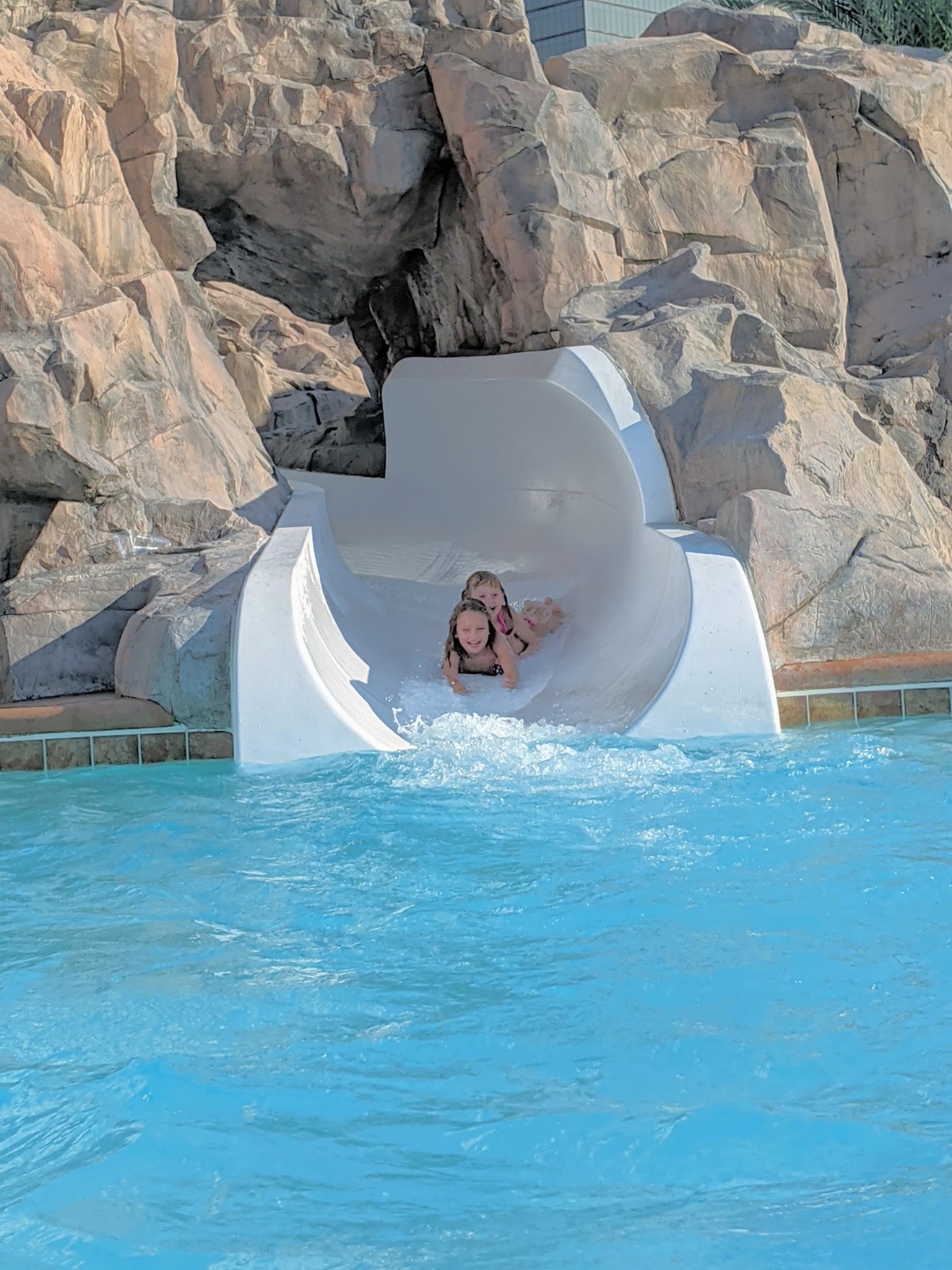 The kids and I spent lots of time at the Excalibur’s three pools, so much time that they befriended a lifeguard. The lifeguard allowed them to sit with her at her post and trained them how to be a lifeguard. The kids loved the water slide! The weather was in the low 90s and laying at the pool every afternoon was just AWESOME.