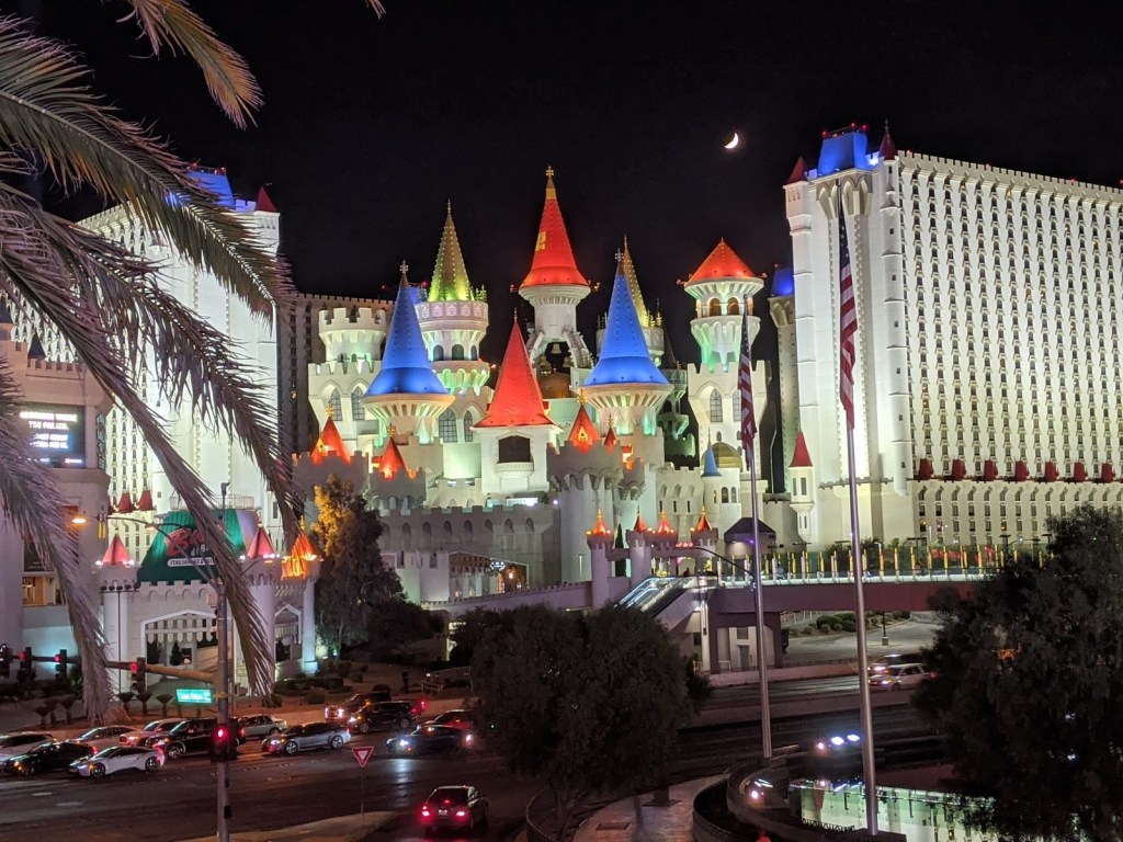 The strip reminded us a lot of Disney with the way the casinos/hotels were scaled. The interiors were as incredible as the exteriors with endless incredible things to see. The themes of each casino was really fun to walk through, connected through what felt like a labyrinth of escalators. leading to different worlds. Paris, New York, Egyptian pyramids, Venice, and our home base the Excalibur castle. The casinos/hotels were massive, our room was #17202.