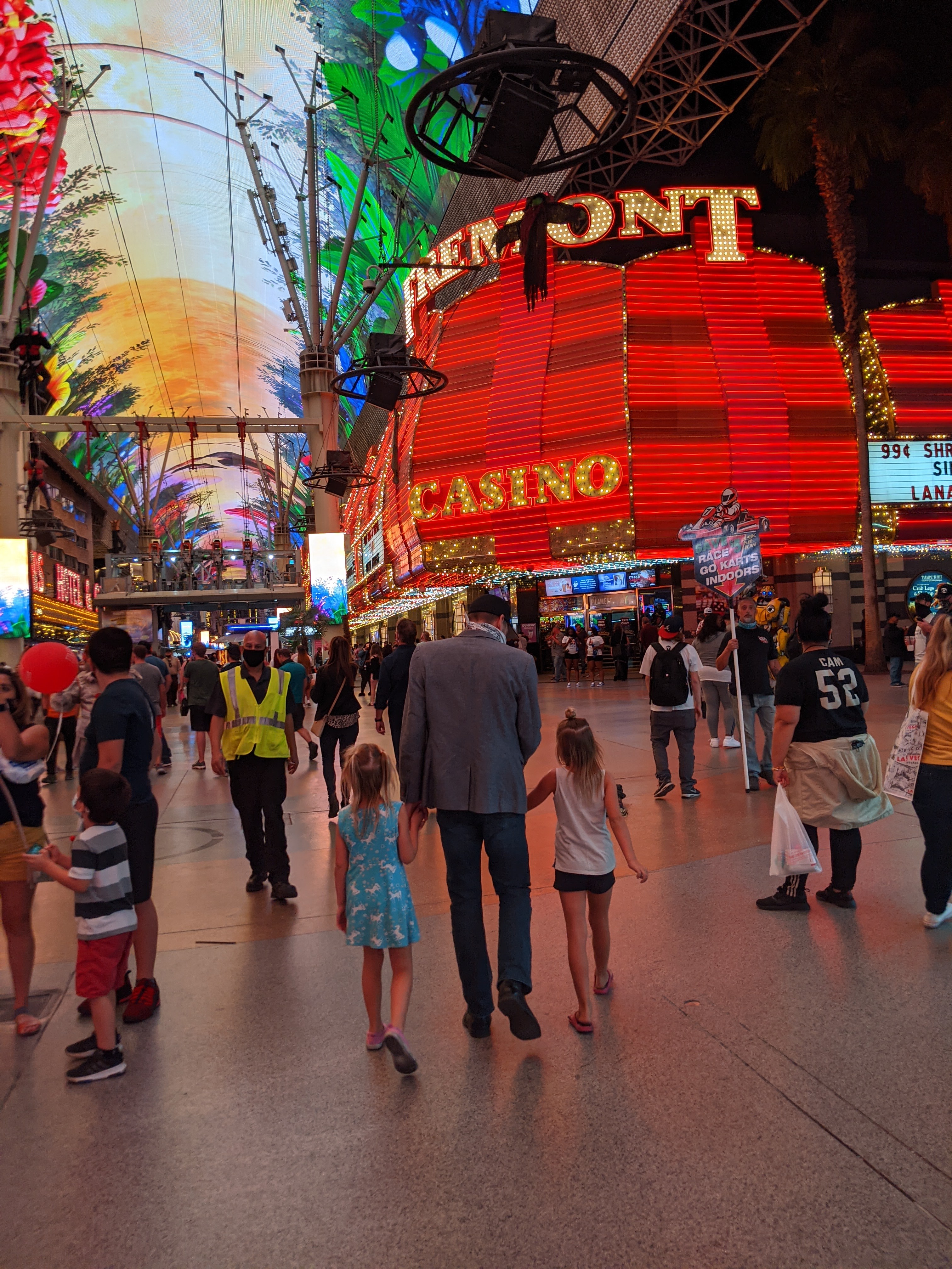 Many attractions were closed due to COVID including most the bars and big restaurants. The casinos are open, which is an experience in itself. Dylan was tortured by all the blinking lights and sounds which he was not allowed to touch. We were pleased to visit Vegas when the streets were a bit quieter due to the COVID closures. Even with a quieter scene than normal, the crowds felt a bit rowdy especially after the sun went down. We only stayed on the strip after dark one night to see the Bellagio water fountain show at 8 pm. We experienced lots of beautiful people, but also a large homeless presence and an unpredictable element with the crowds and party atmosphere.