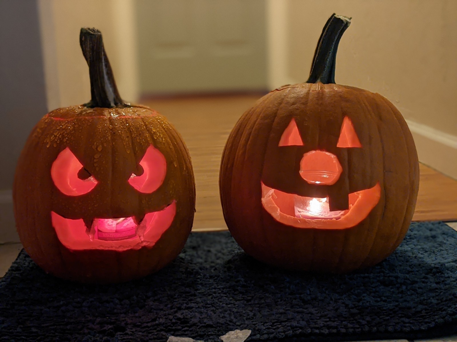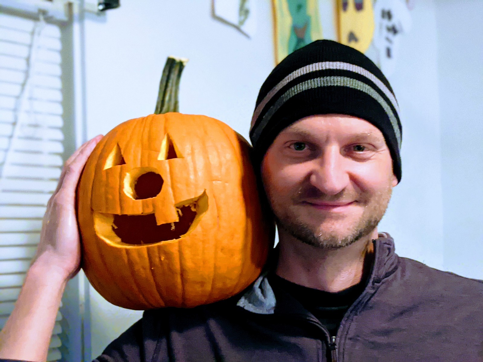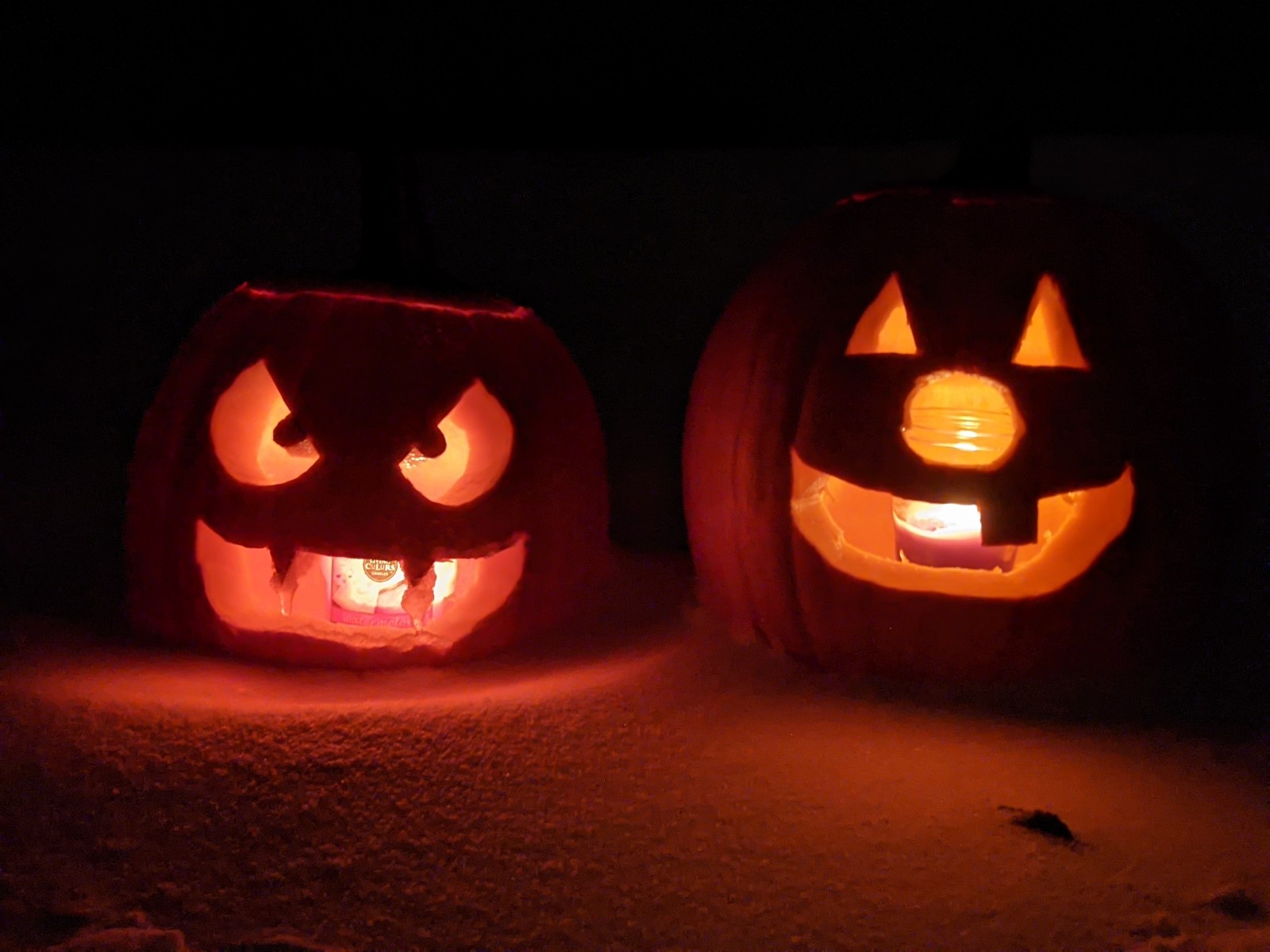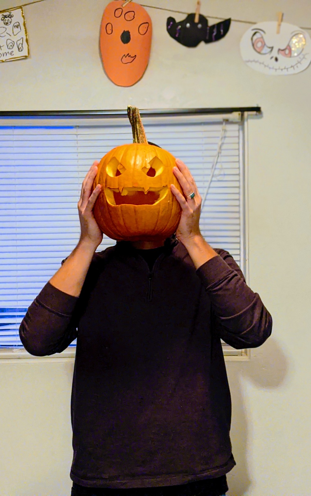 Our family hunkered down with hot chocolate and homemade chili. The kids gutted the slimey from the pumpkins with real bravery and Adam let his artistic juices flow with the carving knives. Meet the double jacks!