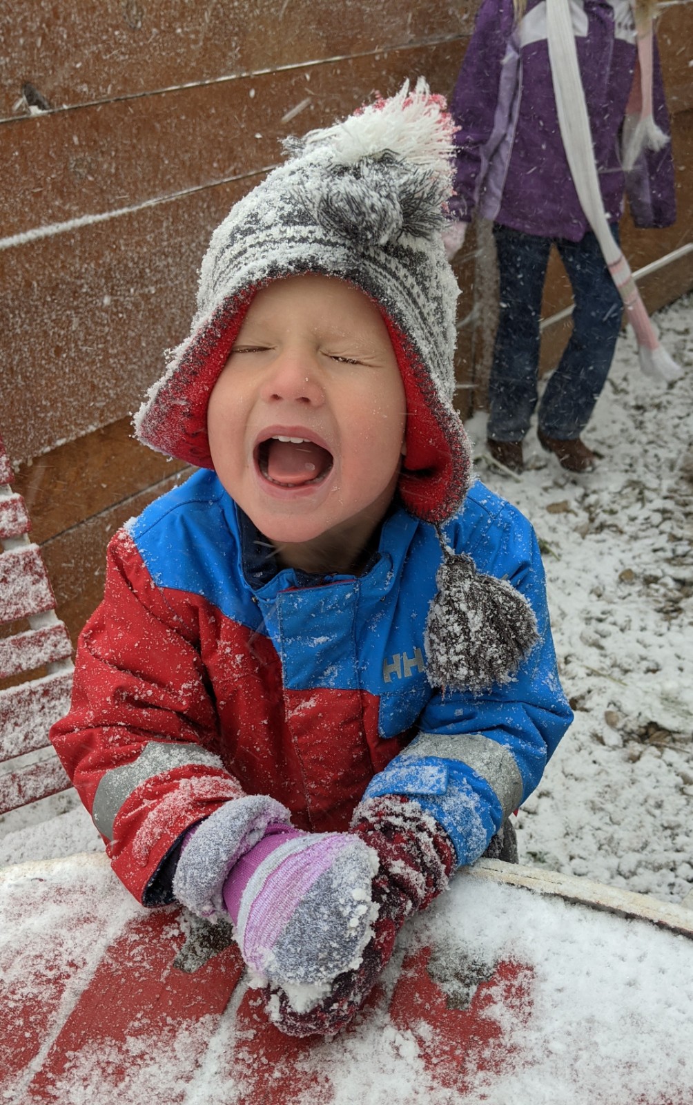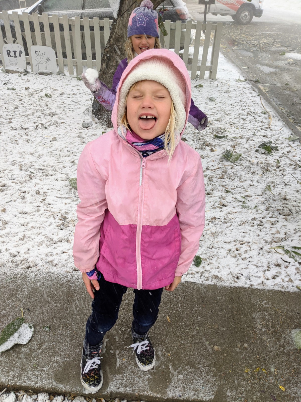 This afternoon we saw our first snowfall. It was a downright blizzard with gusts of wind that went right through you. Before the sun went down there is a sizeable accumulation. It has been years since the kids have seen snow and it was a very exciting thing for us all. Snowballs flew within moments of being out and tongues were out to sample the goodness from above. The roads are jacked for drivers, but for children it is a 10 minute moment straight from Jack Frost heaven.