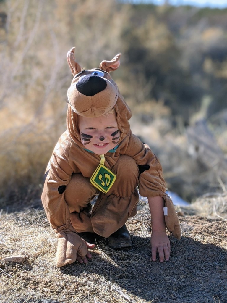 Dylan went as Scooby Doo and enjoyed an entire box of Scooby snacks, one of his favorites.