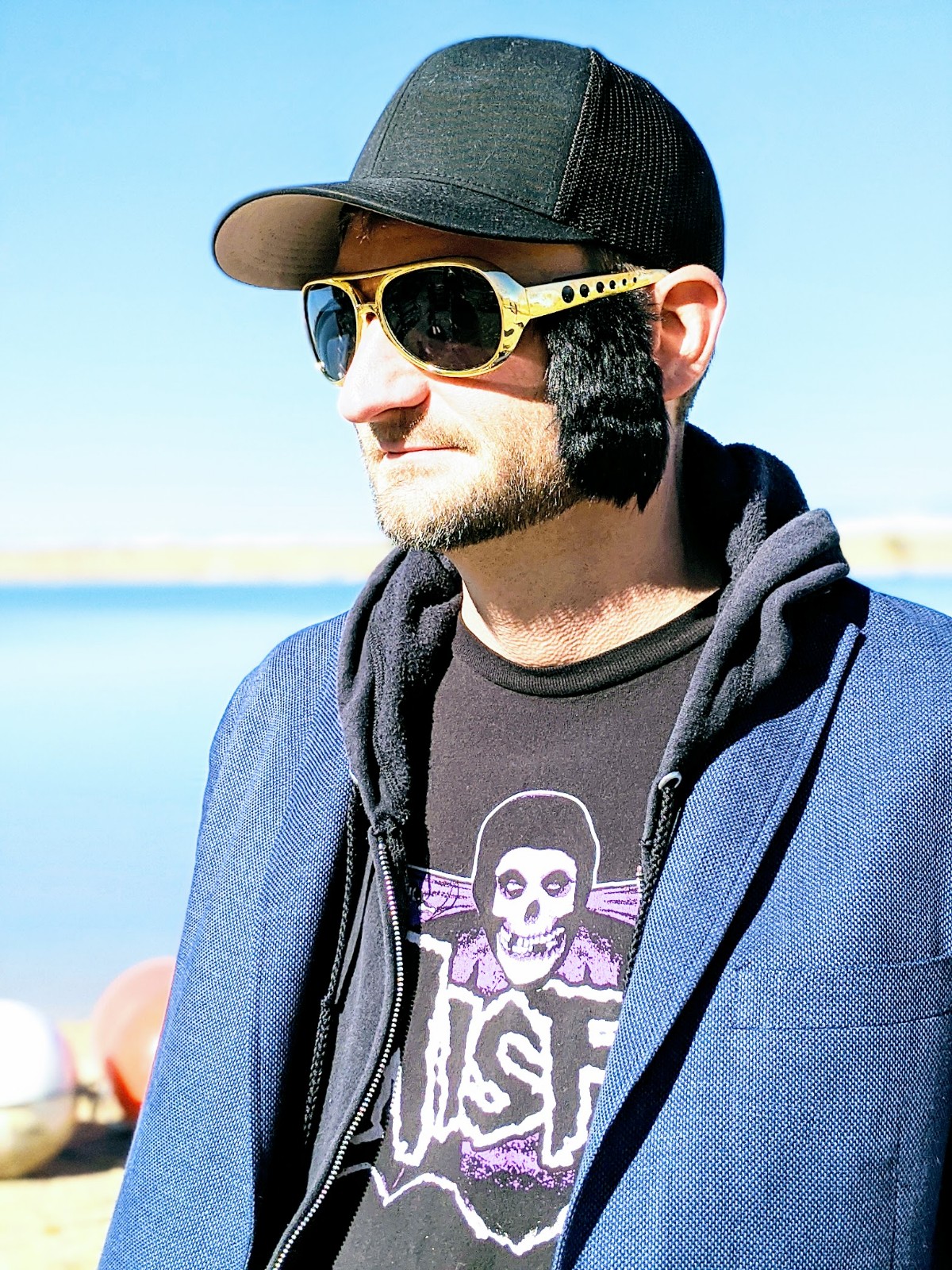 I went as Sandy from Grease and Adam went as Elvis’s great grandson.