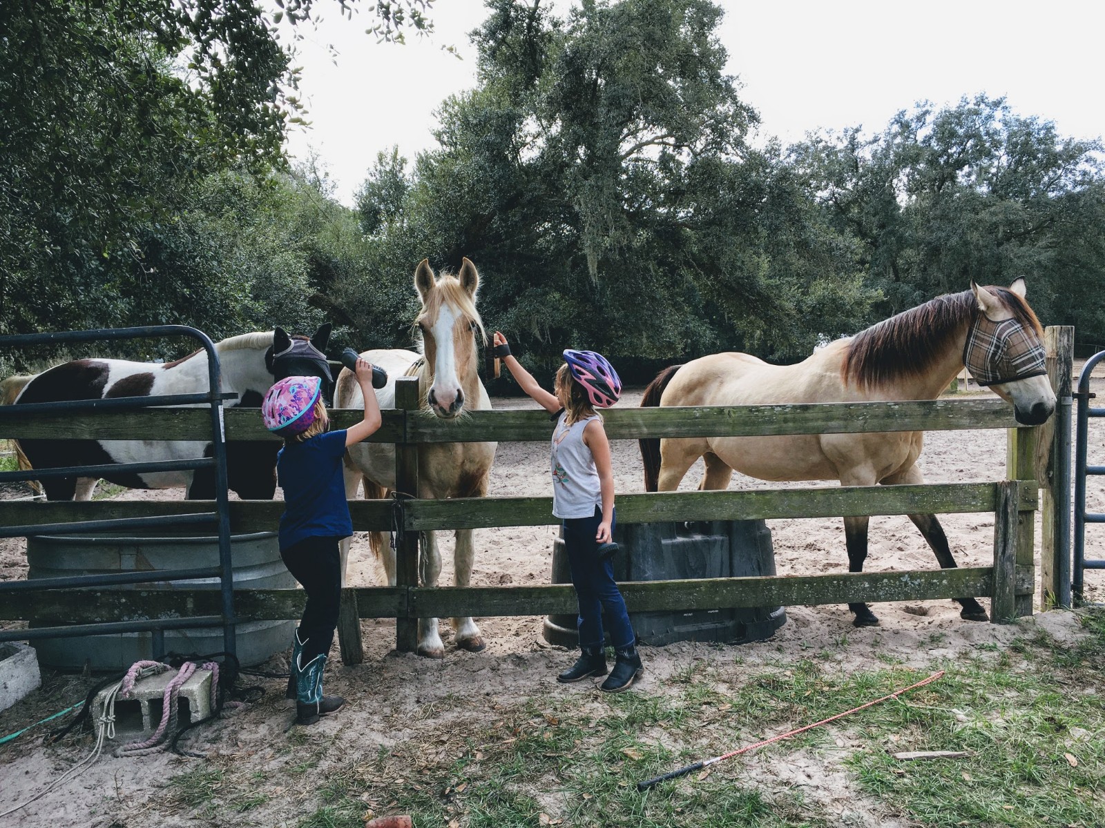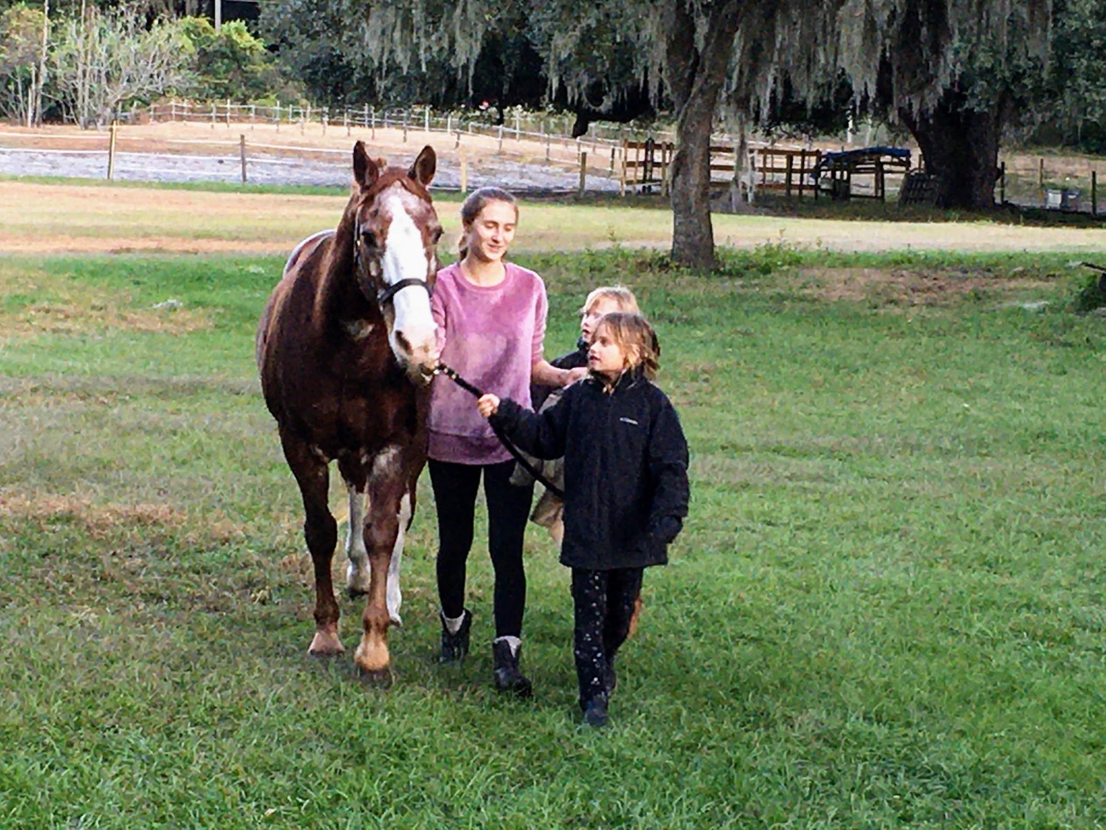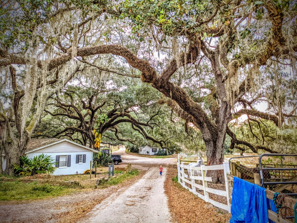 Our new home is everything and more than we hoped for. There are 15 full sized horses and two ponies on our gated property. The stables owner has taken a real shine to our children and they have become involved in caretaking activities and learning about the horses and the veterinary care they require. Our driveway is gated and long and perfect for riding bikes. There is also an equine exercise track that Adam and I have been using to jog. The 16 acre property has live oaks that are over 300 years old and have such a presence. No neighbors can be seen and the stars are amazing. The climate is what we desired on those cold days in Colorado. We are absolutely 100 percent pleased with our new home.