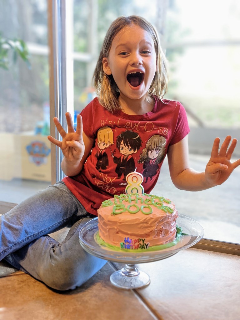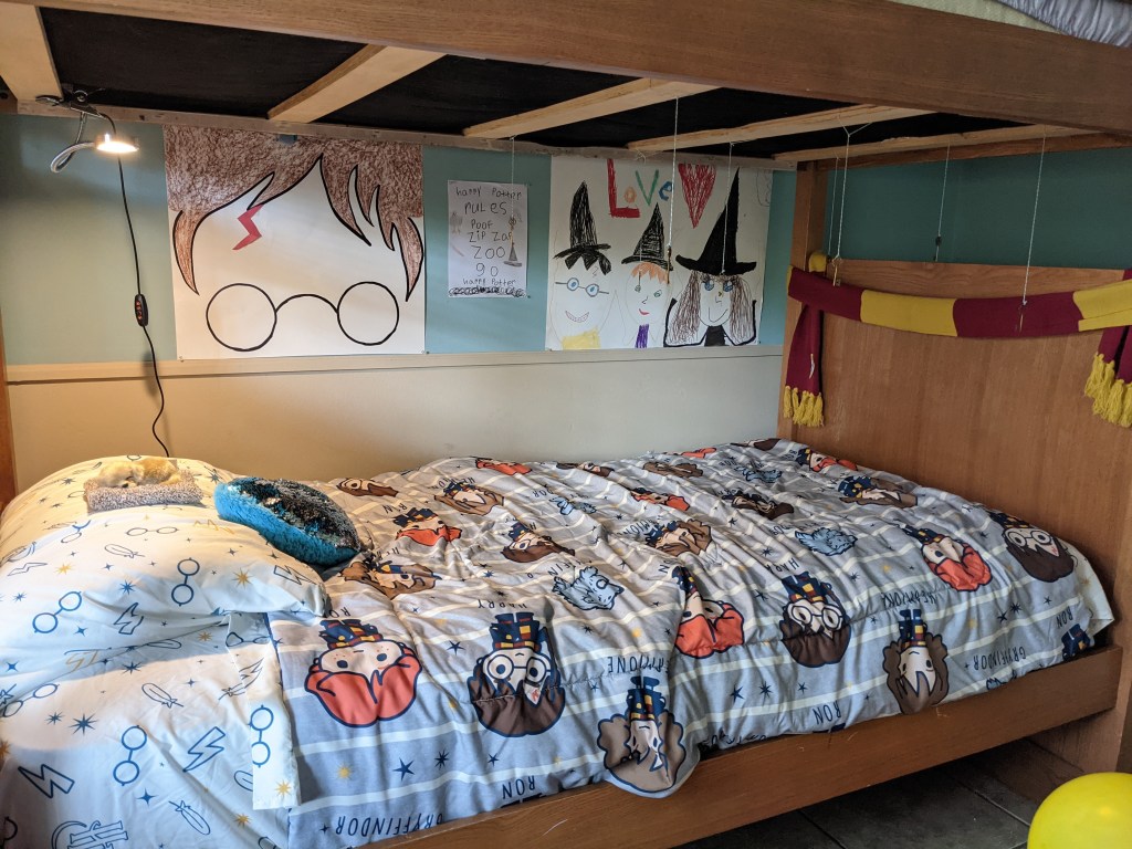 After the party finished, we made Brooklyn’s bed into a Harry Potter heaven. She fell asleep reading Chapter 1 of the first book in the series, the Philosophers Stone.