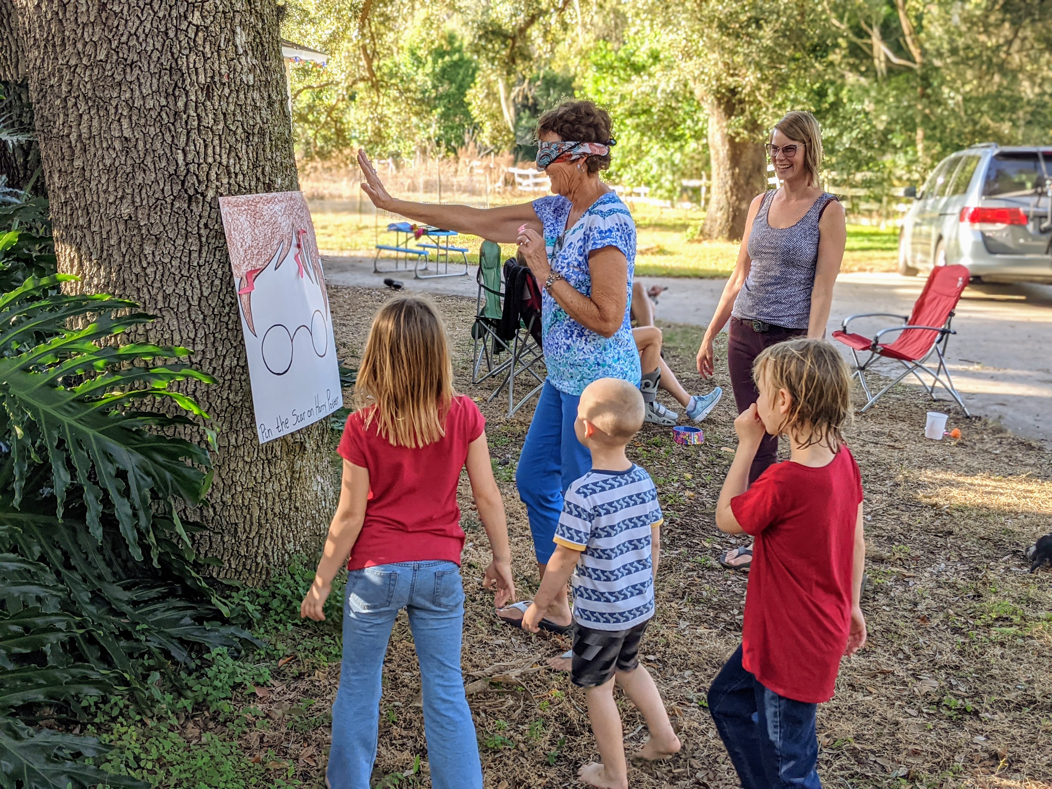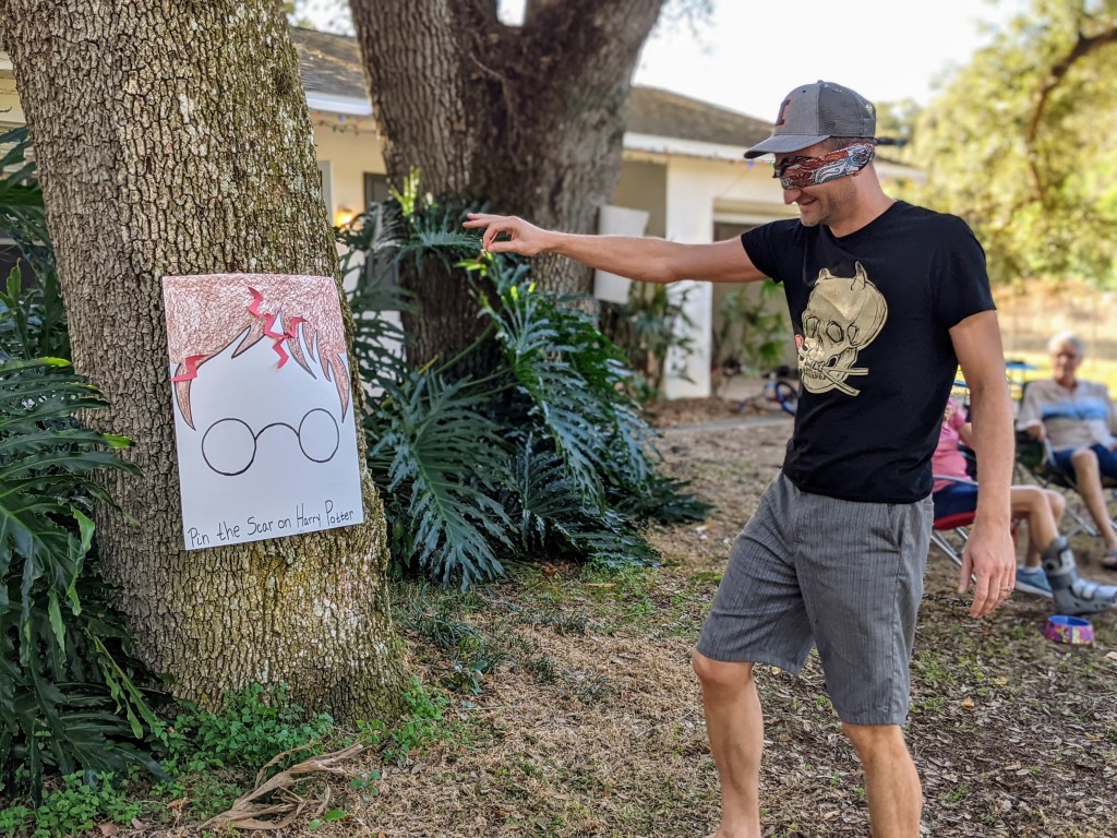 We played Pin the Scar on Harry Potter complete with blindfolding and spinning. I have to say this was my favorite part of the party that had the grown ups laughing the most.